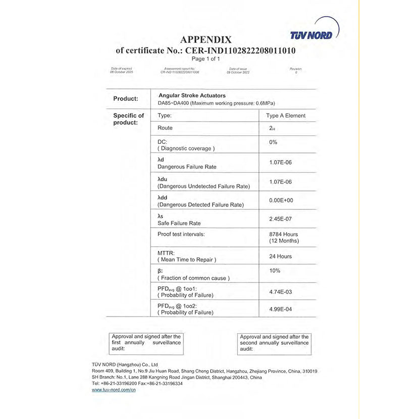 角行程執行器 SIL證書 2