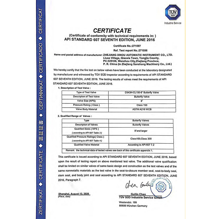 蝶閥防火證書 1